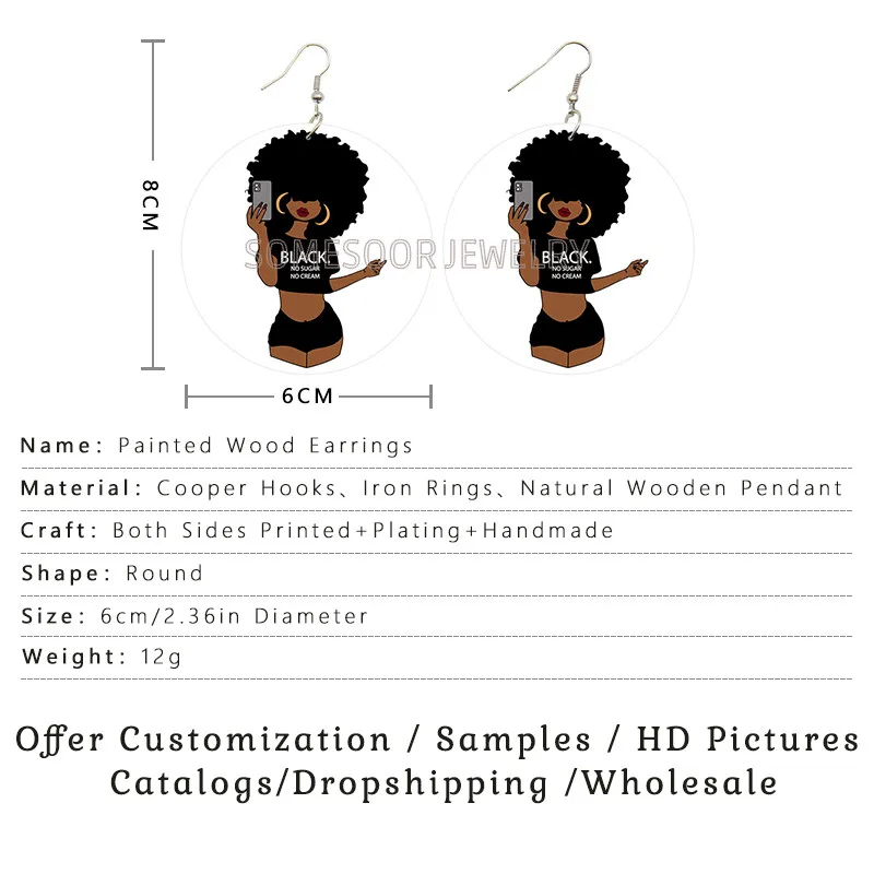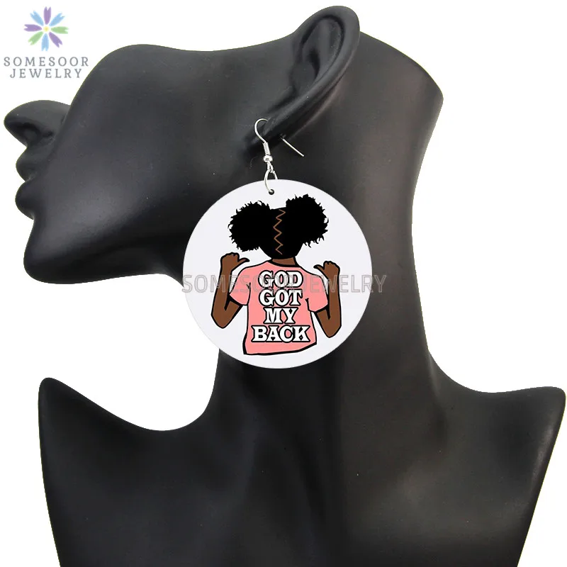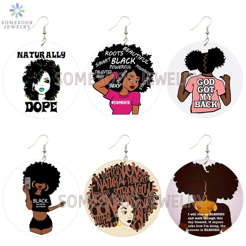 SOMESOOR меланин поппин королева вьющиеся деревянные висячие серьги...
