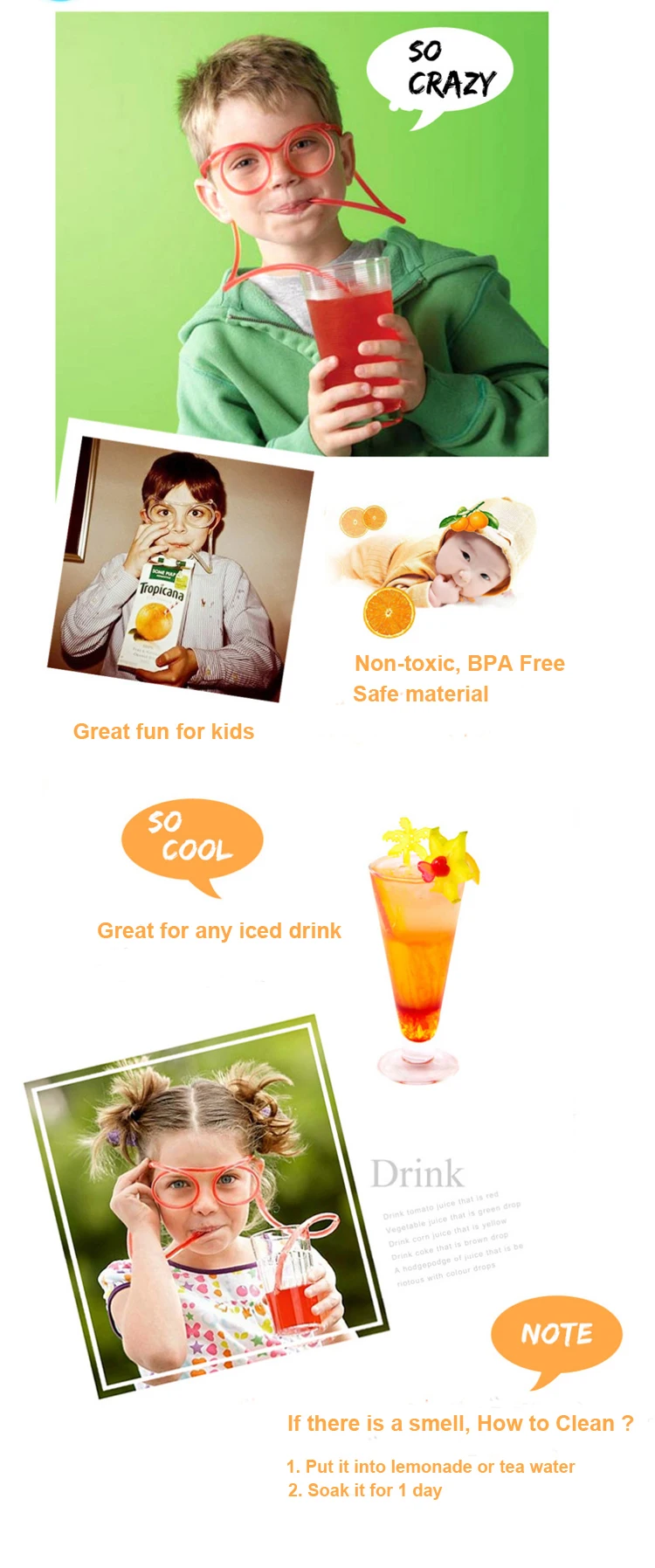 Забавные мягкие Пластик соломы очки гибкий питьевые соломки, трубча...