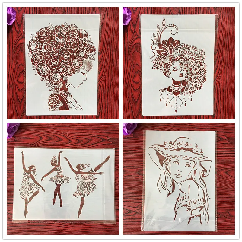 Трафареты для стен, А4, 4 шт.компл., трафареты для раскрашивания, альбом тиснение, скрапбукинг, декоративный трафарет для стен, пластик