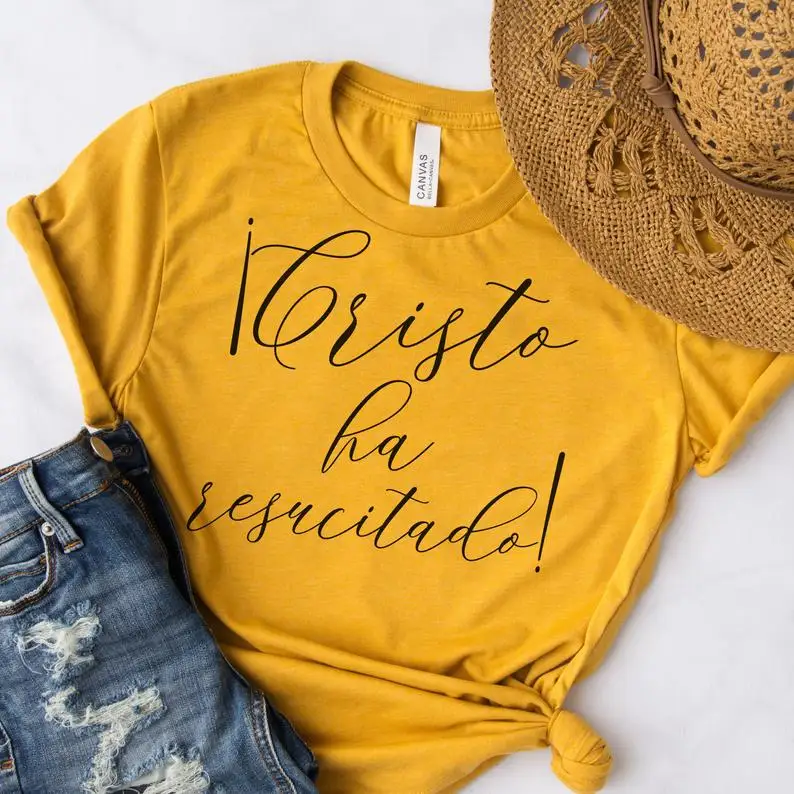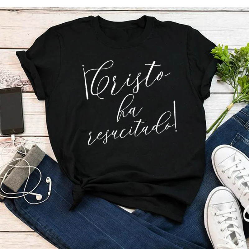Христос восстановился Христос! Женская рубашка с принтом букв и круглым вырезом, 100% хлопок