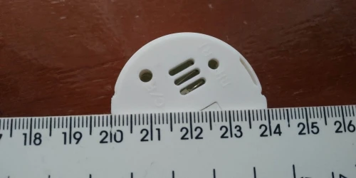 Для своего размера он не лёгкий, Качество пластика на 4. По краям выступы для монтажа в мебель или стену. На обратной стороне переключатель на американскую измерительные систему. Немного мелованная, я думал будет покрупнее