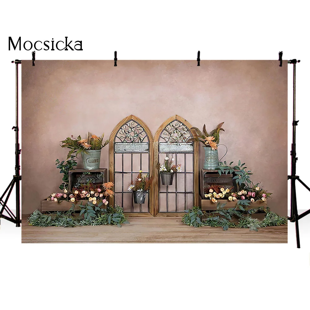 Цветочный розовый фон для фотосъемки с окнами фон для новорожденных детей садовый фон для фотостудии торт