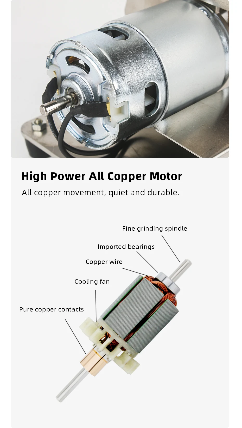 Спецификация:-Материал: металл-Номер двигателя: 775/795/895-Входное напряжение: 110-240 В-Скорость холостого хода: 4000-9000 об/мин (7-ступенчатая регулировка)-Температура холостого хода: 26 °C-45 °C-Шум: 75-85 дБ-Размер ремня: 3x33,3 см/1,2x20,9''-Размер машины: прибл. 11x10x10 см/4,3x3,9x7,5''