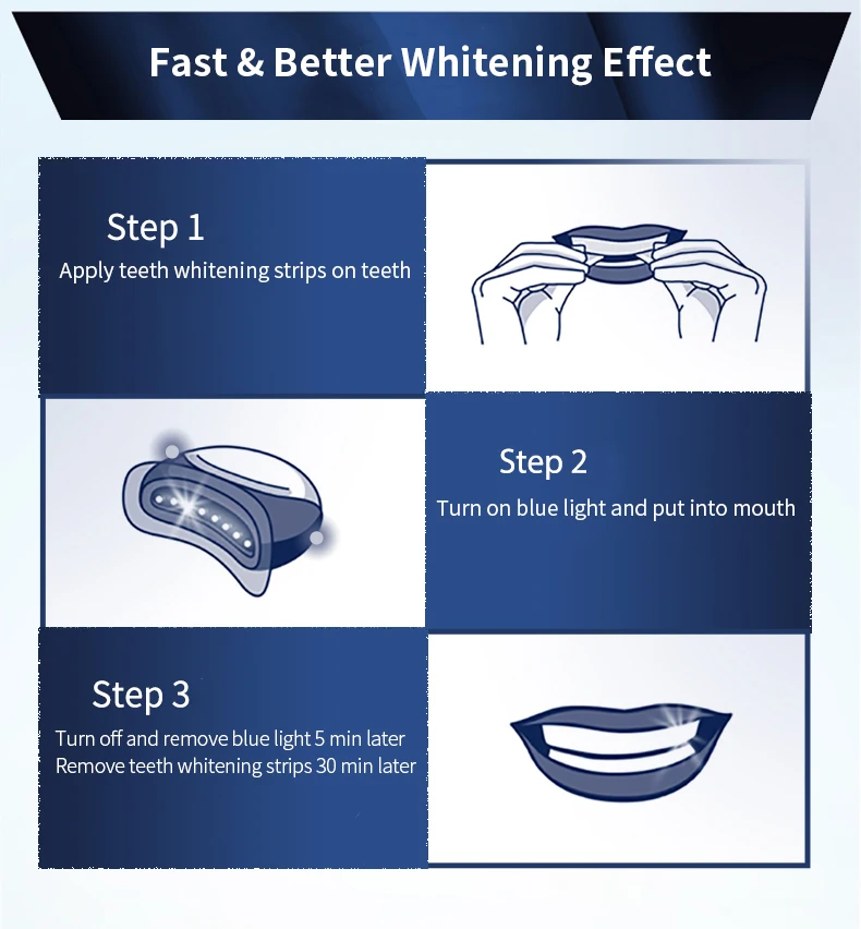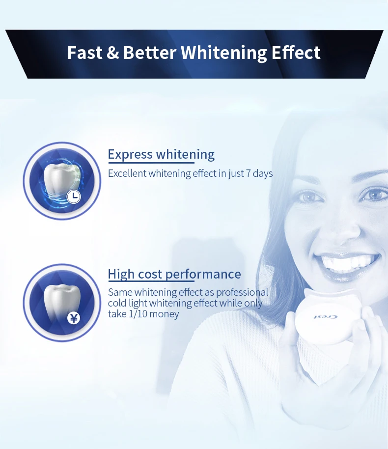 3D белый с синим светильник, отбеливающий на 50% лучше, чем полосой, профессиональный набор полосок для отбеливания зубов