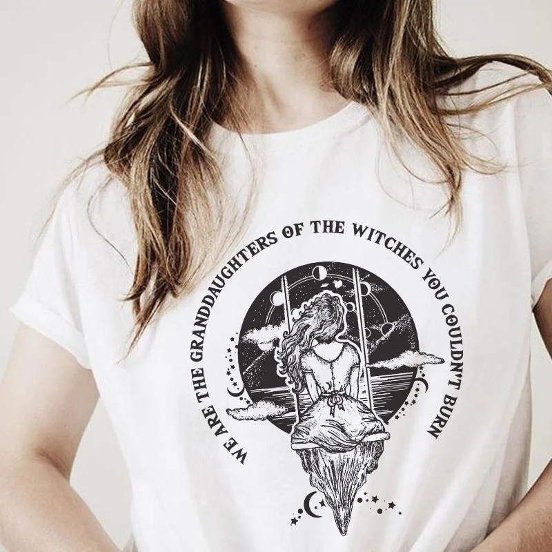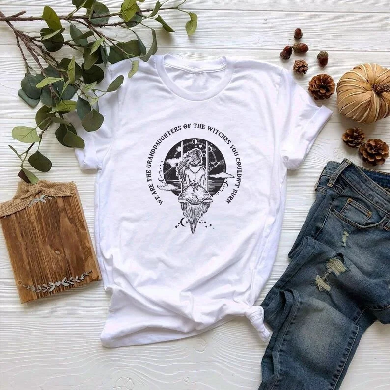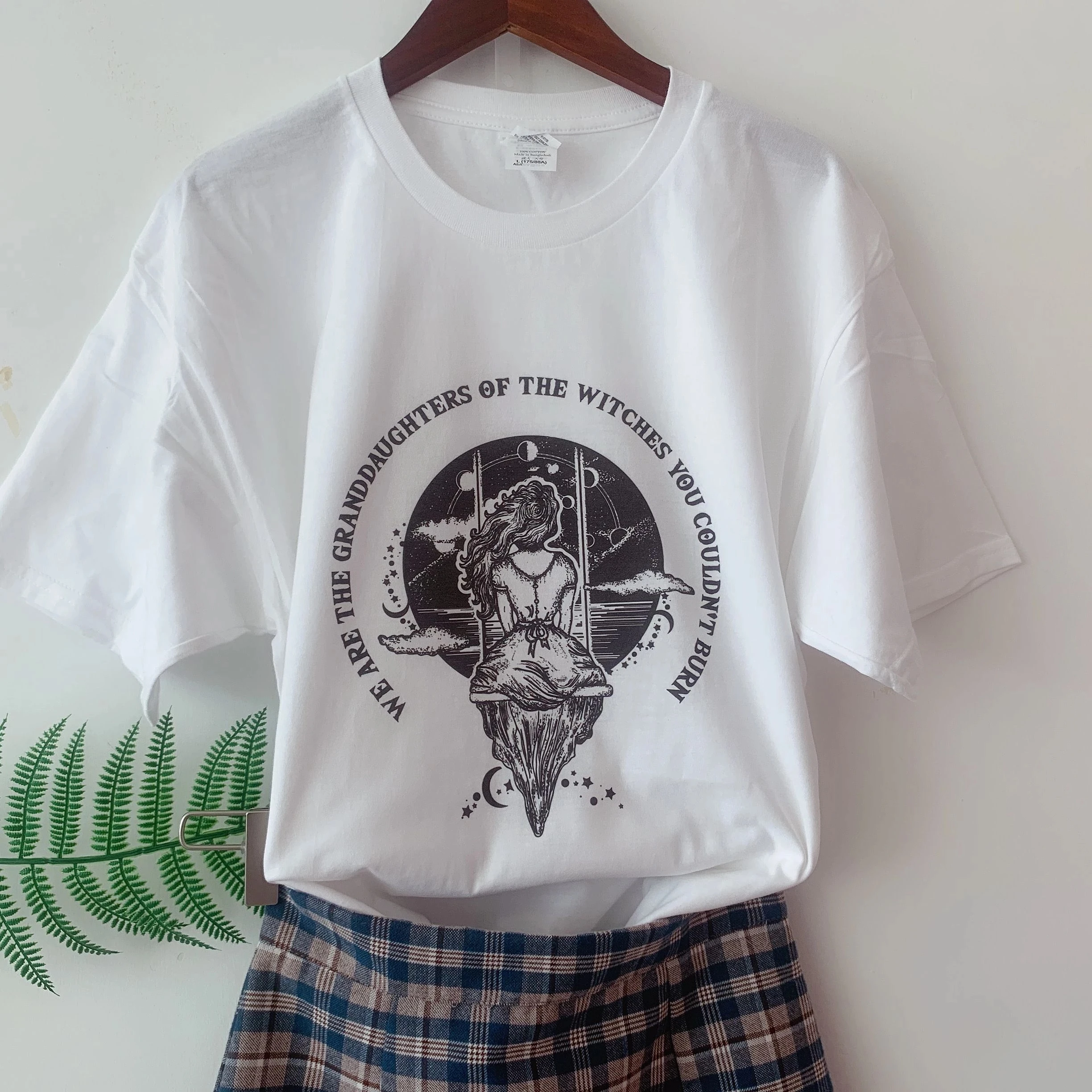 Женская футболка в стиле бохо с рисунком ведьмы, летняя повседневна...