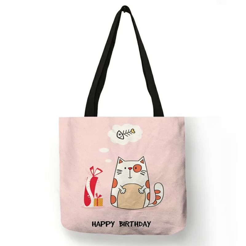 Эко-Льняная многоразовая сумка для покупок с принтом кошки собаки ж...