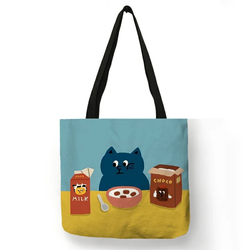 Сумка для покупок B13027 с милым принтом кота и чернилами, женские ...