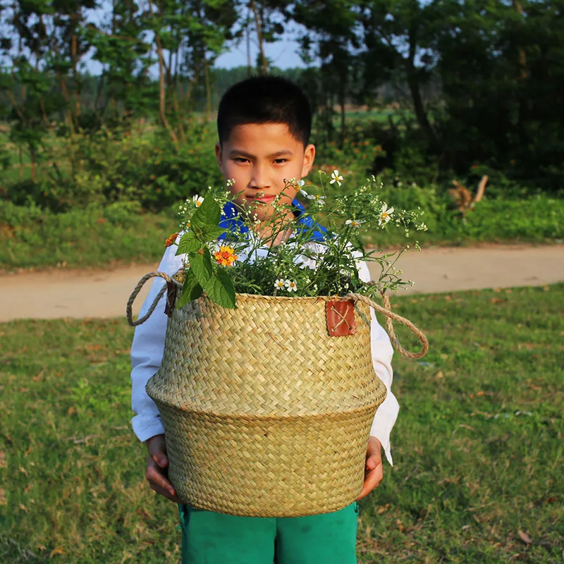 Корзина для хранения натуральных морских водорослей, плантатор для домашнего сада, складные корзины ручной работы с цветами для грязного белья, органайзер для игрушек