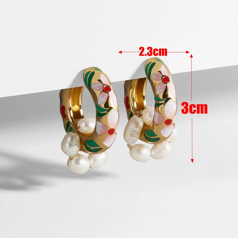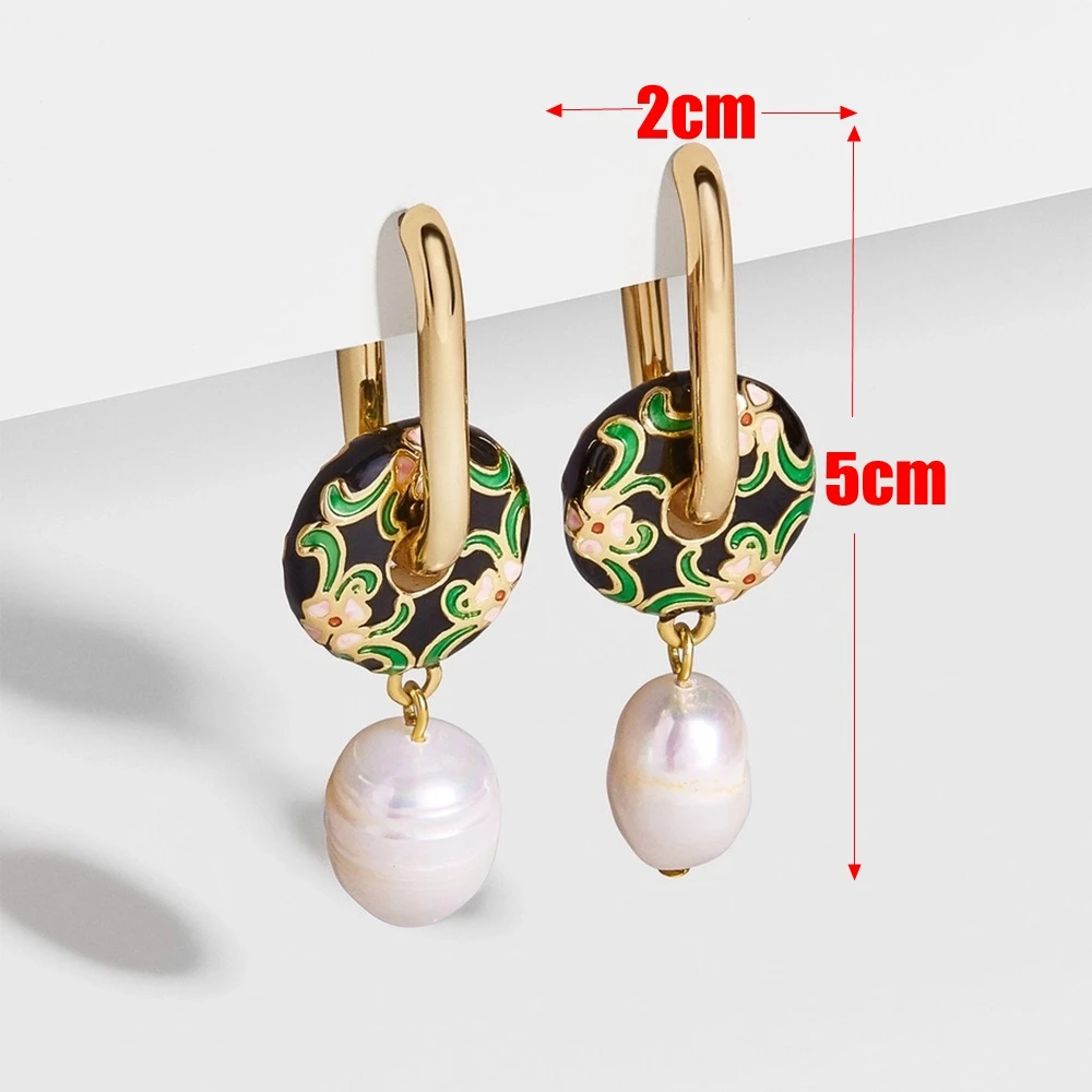 Винтажные круглые геометрические серьги-подвески Huggie для женщин, богемные круглые массивные серьги с жемчугом, эмалевые ювелирные изделия Вечерние