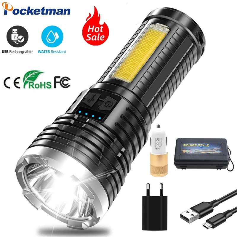100000 люмен портативный мощный COB боковой светильник светодиодный флэш-светильник USB Перезаряжаемый встроенный аккумулятор тактический фонарь водонепроницаемый светильник