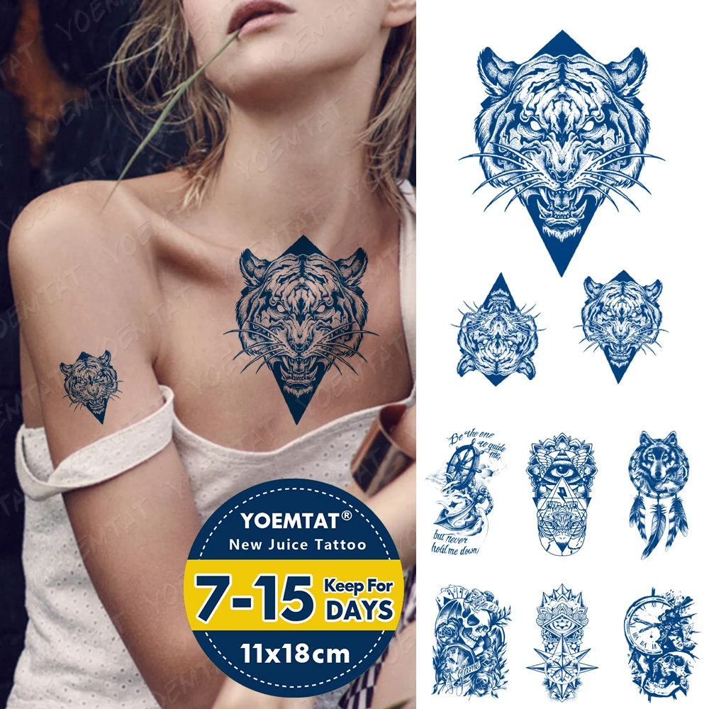 Чернила для сока, стойкие водостойкие татуировки, тигр, волк, Череп, часы, якорь, вспышка, полные татуировки, рука, боди-арт, поддельные татуировки для мужчин, женщин, мужчин