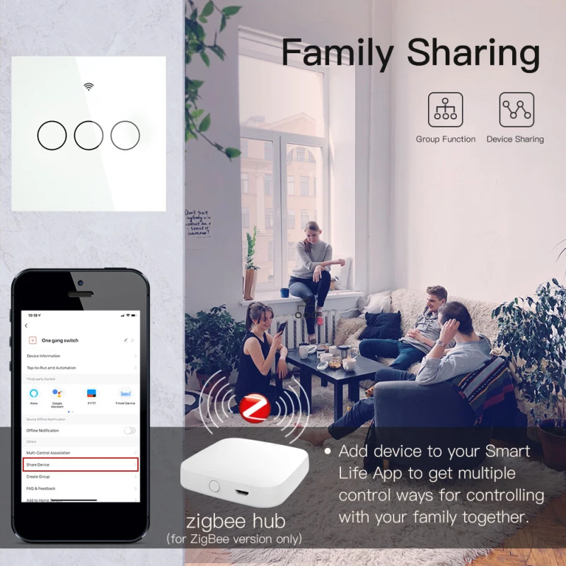 Работает с TUYA ZIGBEE HUB: коммутатор не может работать отдельно, должен работать с tuya zigbee hub (не входит в комплект).