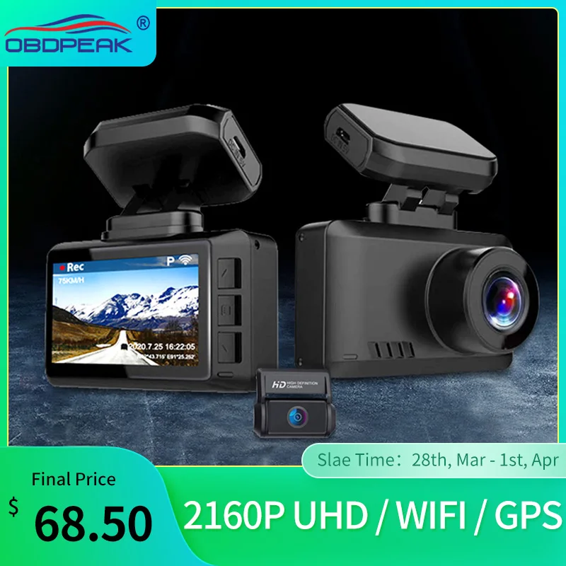 Автомобильный видеорегистратор OBDPEAK M63 2160P UHD, видеорегистратор Sony IMX 415 с GPS-трекером, функцией ночного видения, телефоном, приложением, Wi-Fi, двойным видеорегистратором, 24 часа парковки