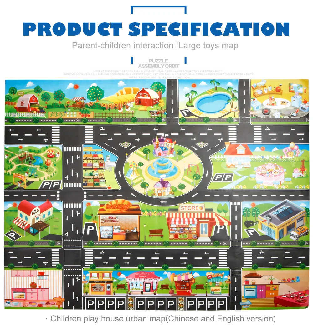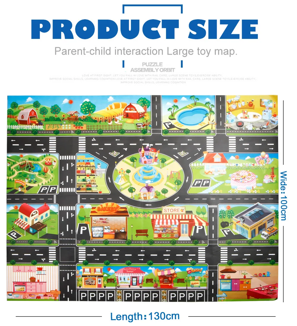 Продукт Размеры: велосипед около 17,5 см * 10,5 см автомобиль около 4,5 см карту около 130*100 см Дерево около 13,5 см дорожный знак на детей в возрасте примерно 6 см