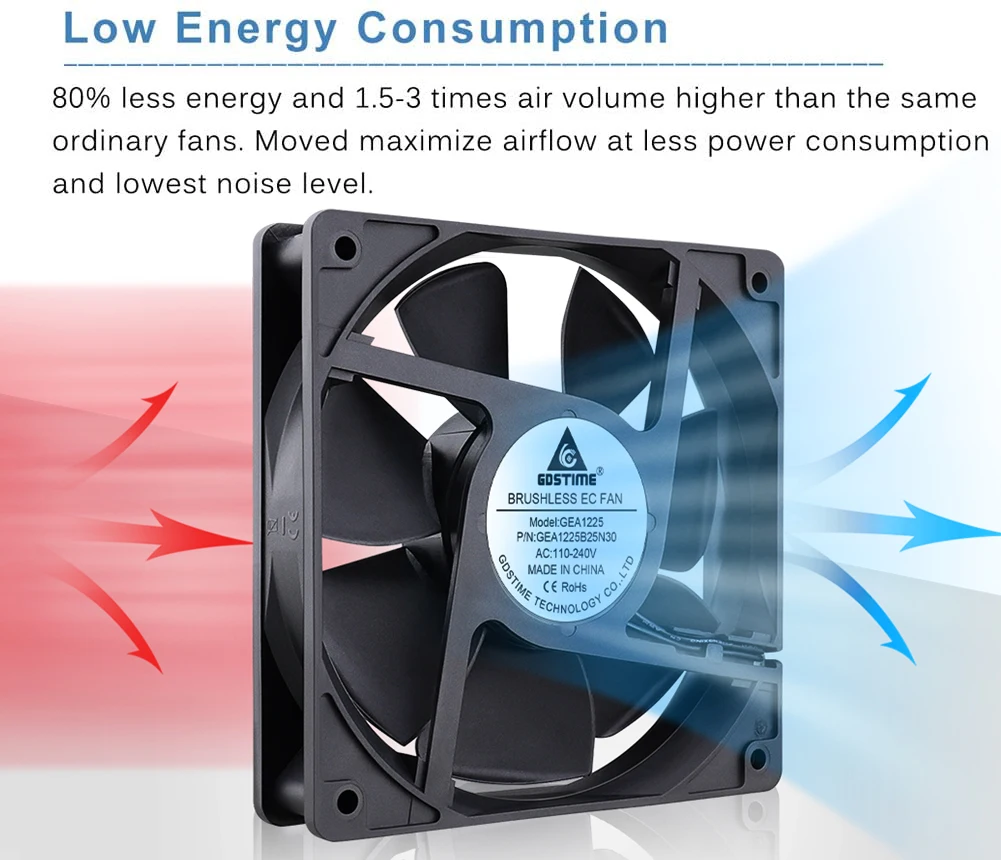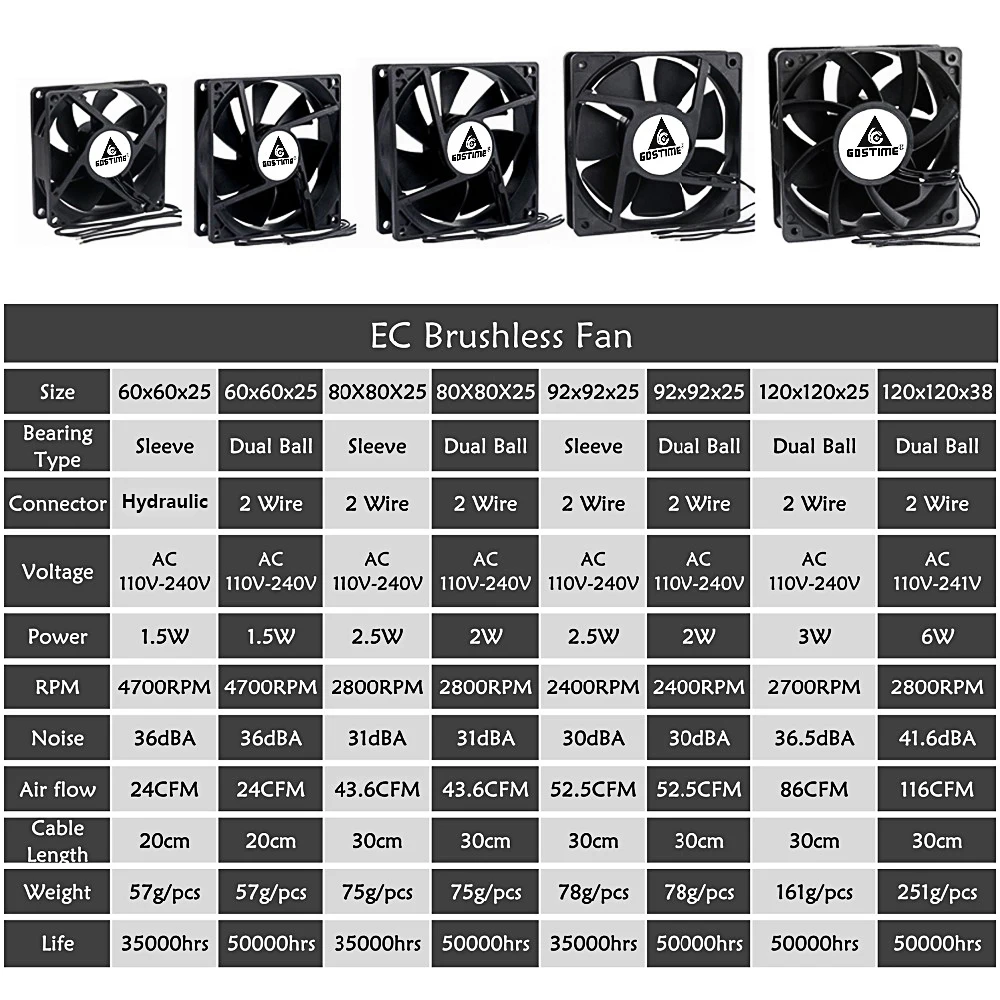 2 шт., Бесщеточный вентилятор охлаждения Gdstime EC, 110 В, 120 В переменного тока, 220 В, 240 в, осевой вентилятор на шарикоподшипнике 60 мм, 80 мм, 90 мм, 120 мм