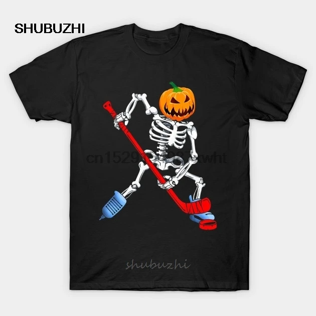 Мужская футболка со скелетом для хоккея с шайбой, футболка для хоккея на Хэллоуин с тыквой, Женская Мужская футболка