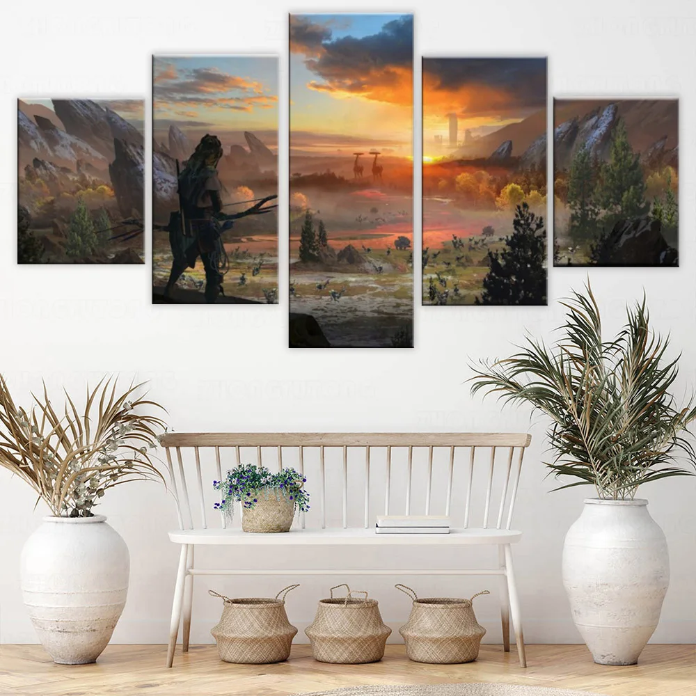 Картина на холсте Hd, настенное художественное оформление, 5 шт., картина Horizon Zero Dawn, игровое украшение для дома, модульный плакат, в рамке для гостиной