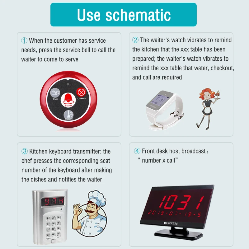 Retekess TD105 999CH хост-приемник + 10 шт. T117 кнопка вызова официанта система вызова ресторан пейджер обслуживание клиентов