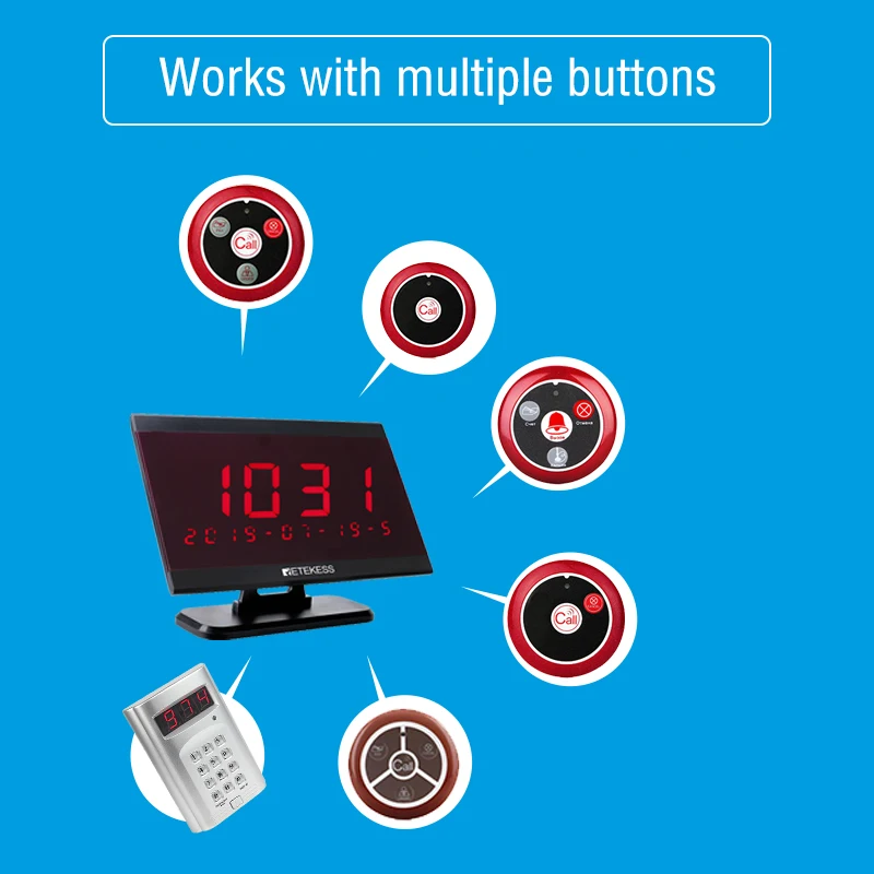 Retekess TD105 999CH хост-приемник + 10 шт. T117 кнопка вызова Ресторан Система вызова ресторан пейджер вызов обслуживание клиентов