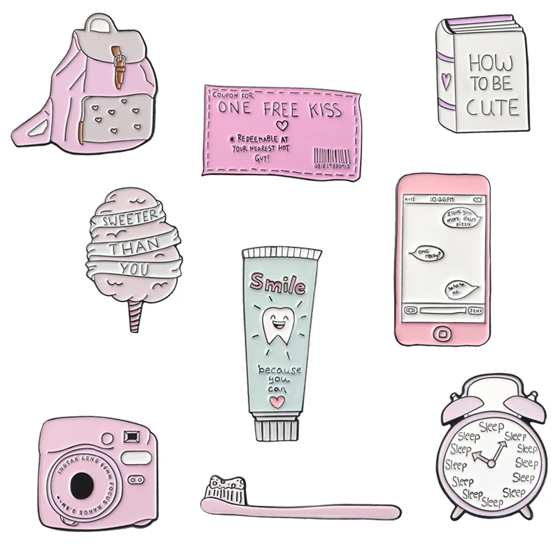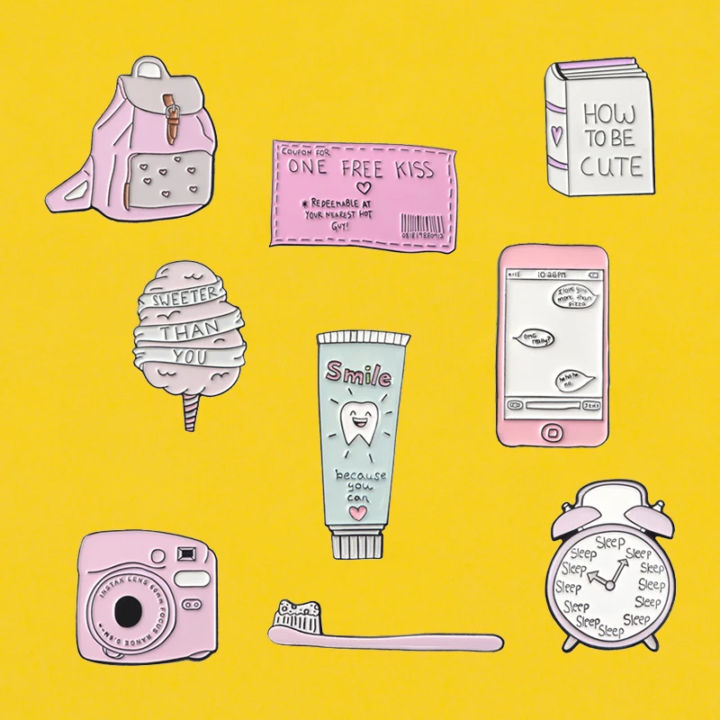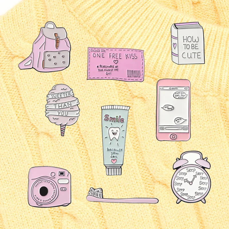 Раньше в школу, булавки для будильника, булавки для книг, Розовые милая зубная щетка, броши, булавки, рюкзак, подарки для путешествий для студенток
