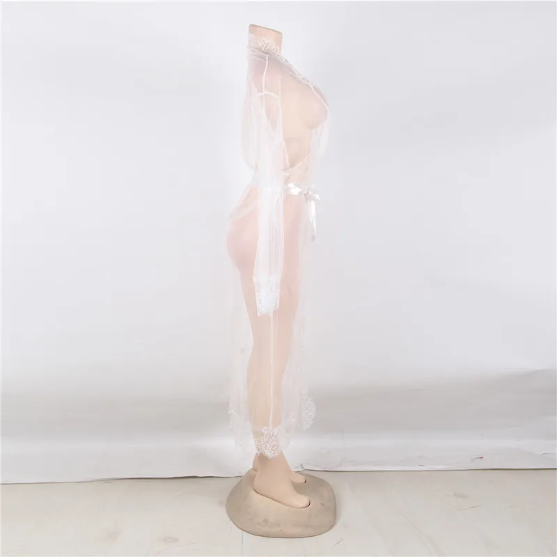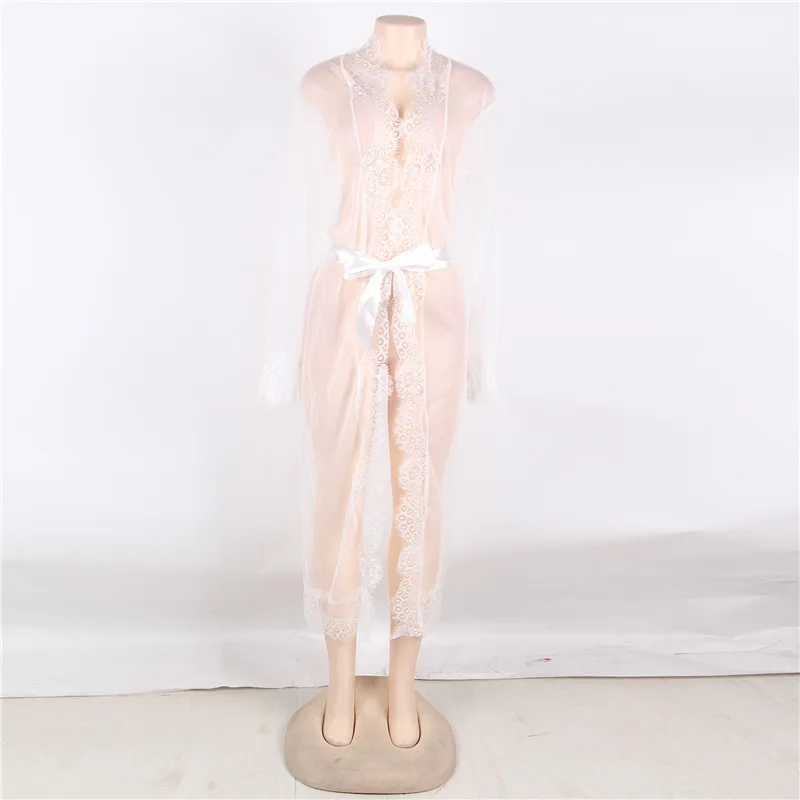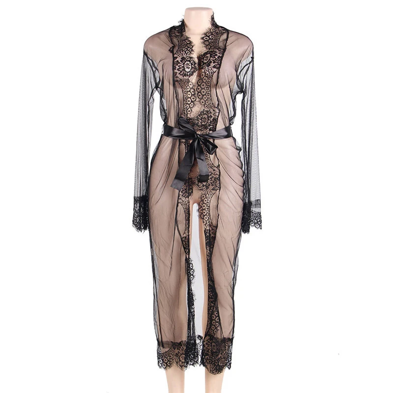Халат Comeonlover женский прозрачный, кружевной пеньюар с длинным рукавом