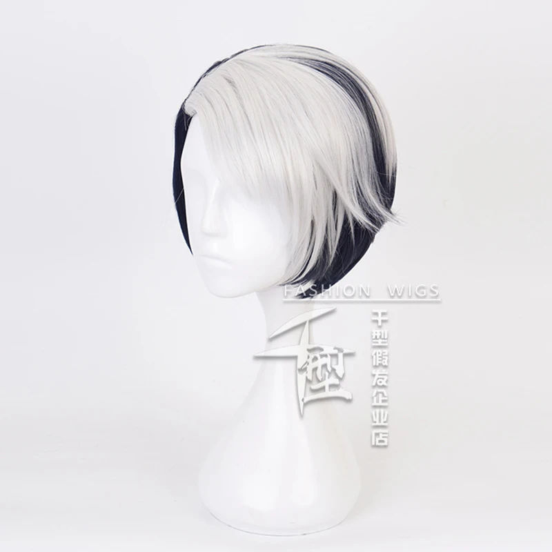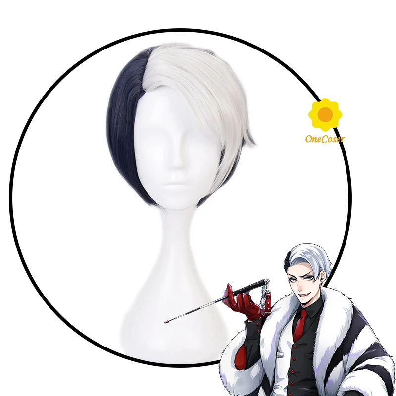 Парик Divus Crewel Twisted Wonderland для костюмированной вечеринки, короткий белый и черный парик + бесплатная шапочка, синтетические волосы на Хэллоуин, вечерние реквизиты для мужчин и женщин