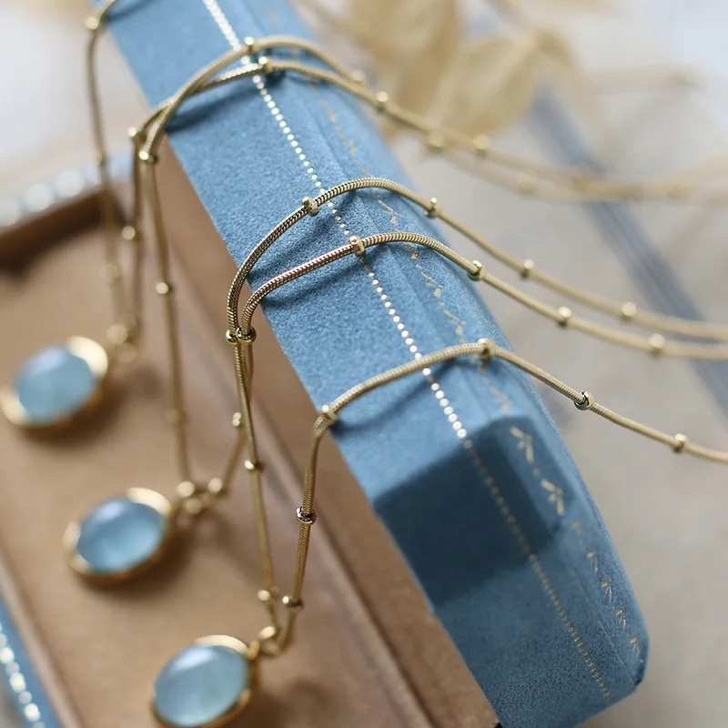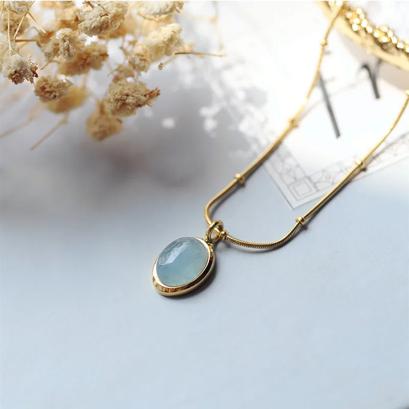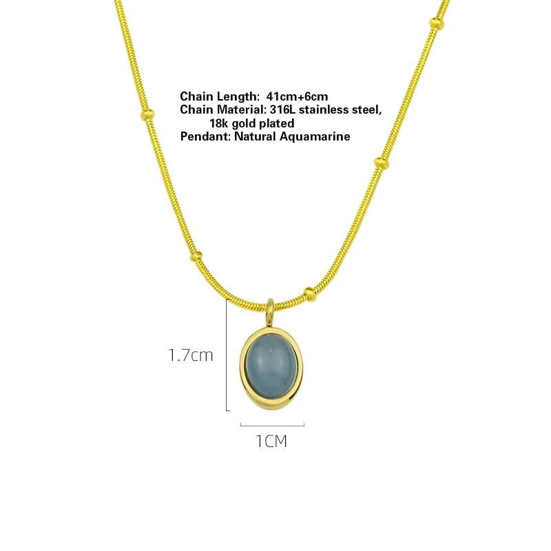 Женская цепочка из нержавеющей стали с бусинами, позолоченная цепочка из натурального аквамарина, цвет синий, 18 К