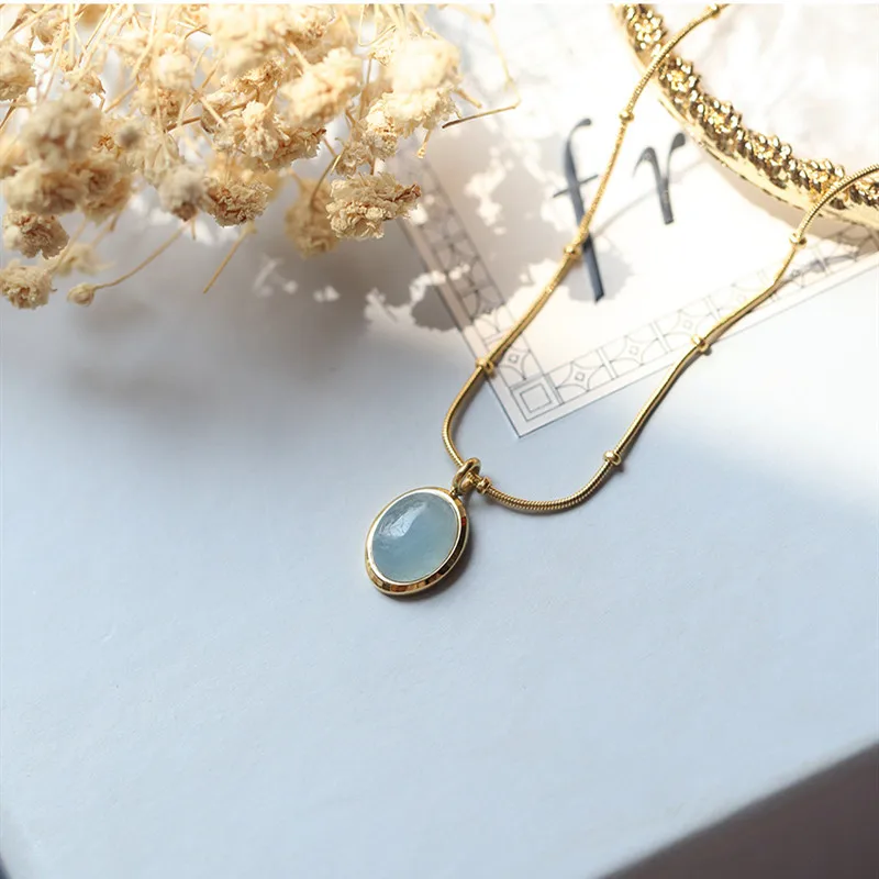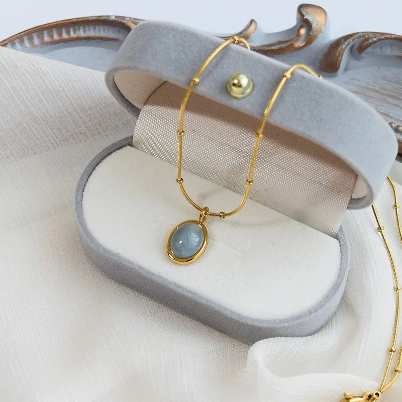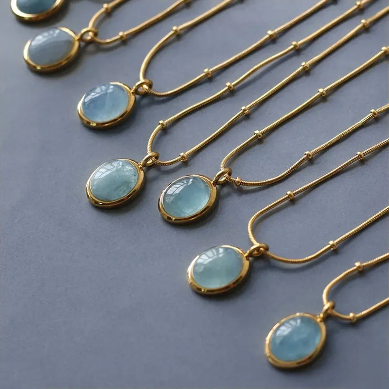 Ожерелье с подвеской из Морского голубого камня для женщин ожерелье...