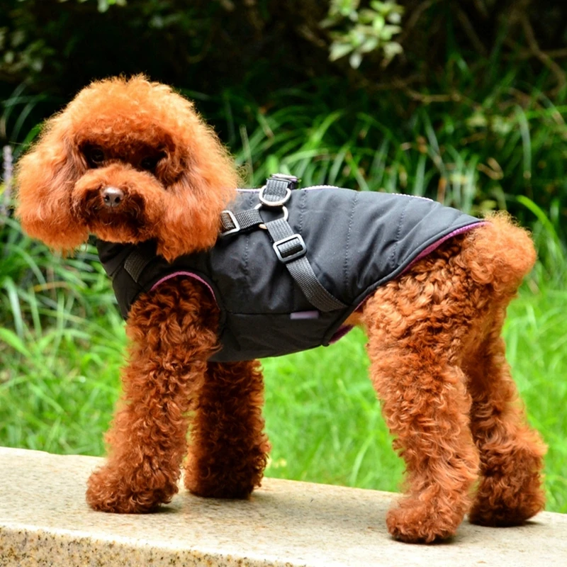 2 в 1 куртка для домашних питомцев С упряжкой лыжный костюм зимняя теплая водонепроницаемая одежда для собак пальто на молнии для собак наряды французского бульдога
