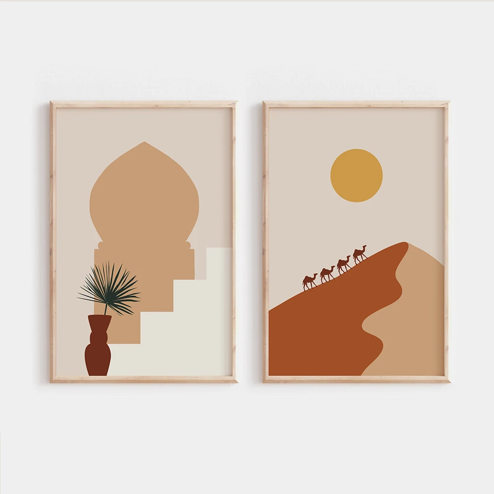 Марокканский принт, настенное искусство, Марракеш, сахара, пустыня, верблюд, холст, бохо, декор для комнаты, картины, постер с мусульманской архитектурой