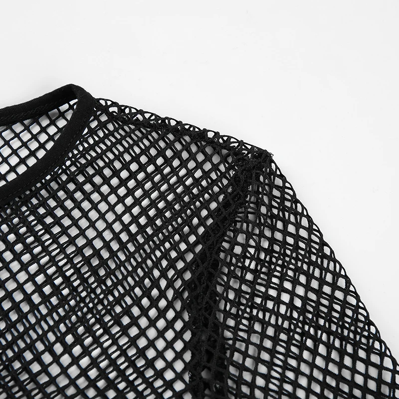 Женский сетчатый топ в стиле Харадзюку, Прозрачная Черная футболка