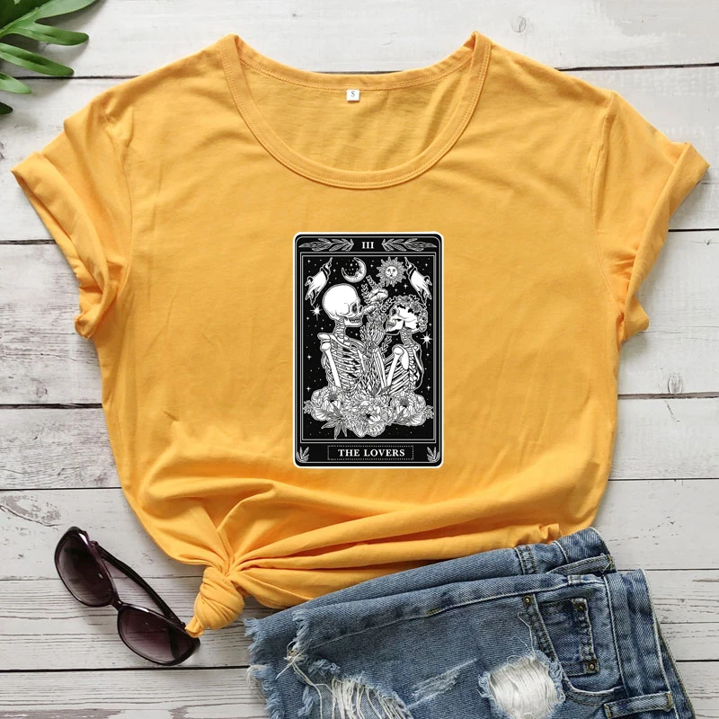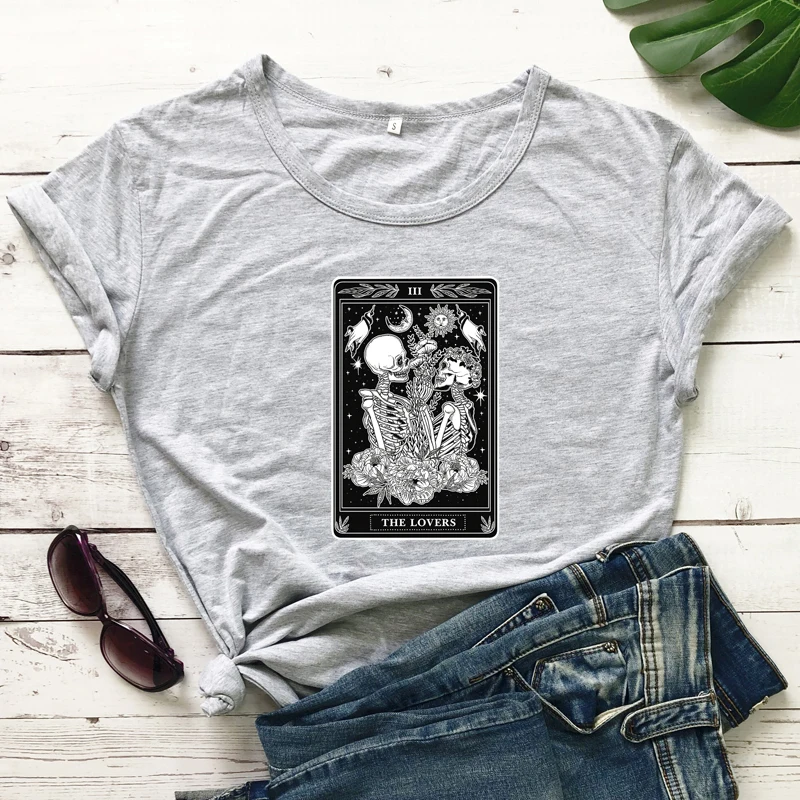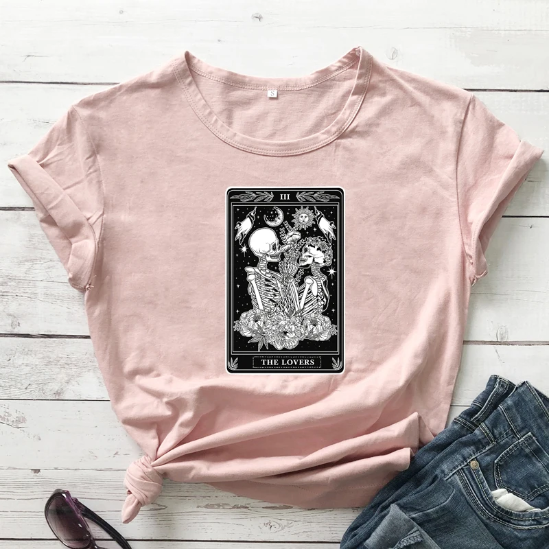 Футболка Таро для влюбленных, женская, подарок на день Святого Валентина, мистический Скелет Солнца и Луны, волшебный скелет