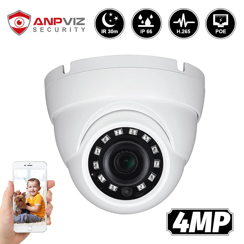 Купольная IP-камера видеонаблюдения Anpviz, 4 МП, POE, для дома и улицы, ночное видение H.265, IP66, P2P