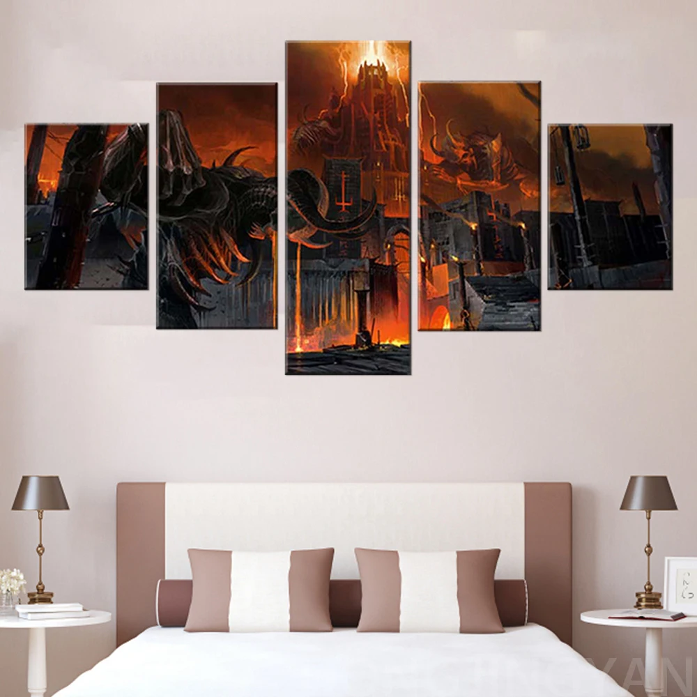 Картина на холсте HD принты 5 шт. Фэнтези искусство Скелет Череп картина дом вечная игра плакат искусство домашний декор модульная рамка