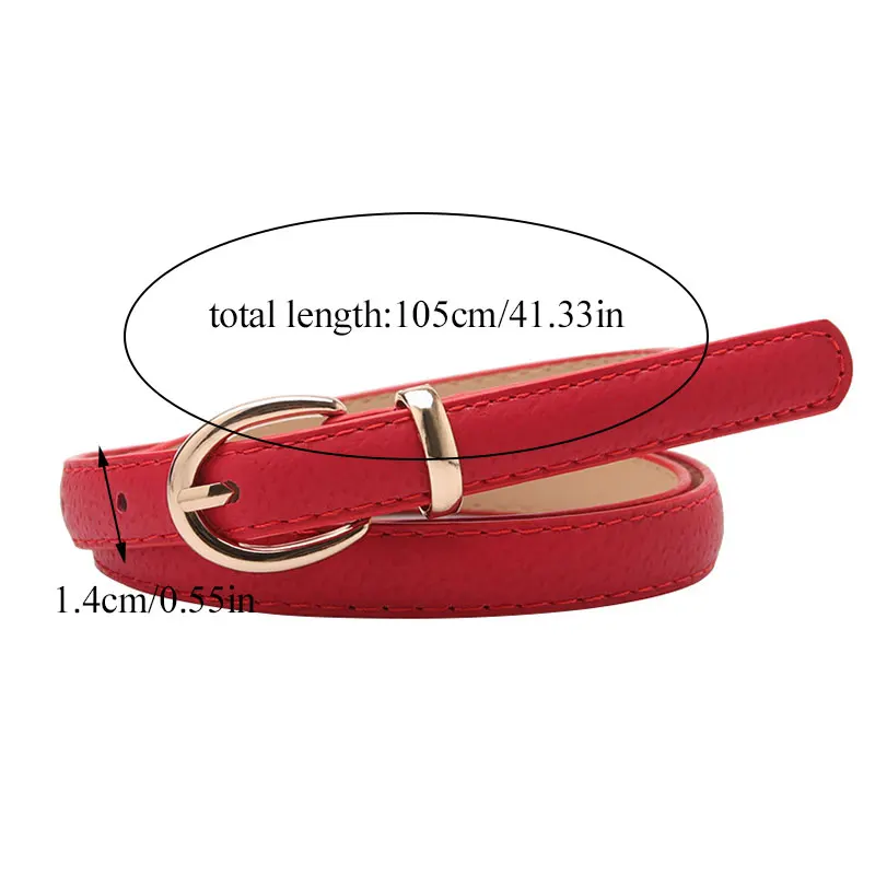 Женский ремень 1,4 см Широкие повседневные тонкий пояс из полиуретановой кожи и джинсовые брюки поясом пряжкой Регулируемая платье на бретельках