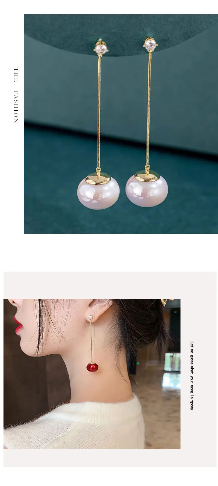Новые Стразы, длинные висячие серьги с большим искусственным жемчуг...