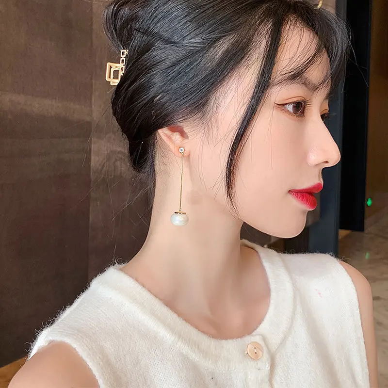 2021 корейские модные новые жемчужные серьги длинные жемчужные серьги с бахромой акриловые ювелирные изделия оптовая продажа