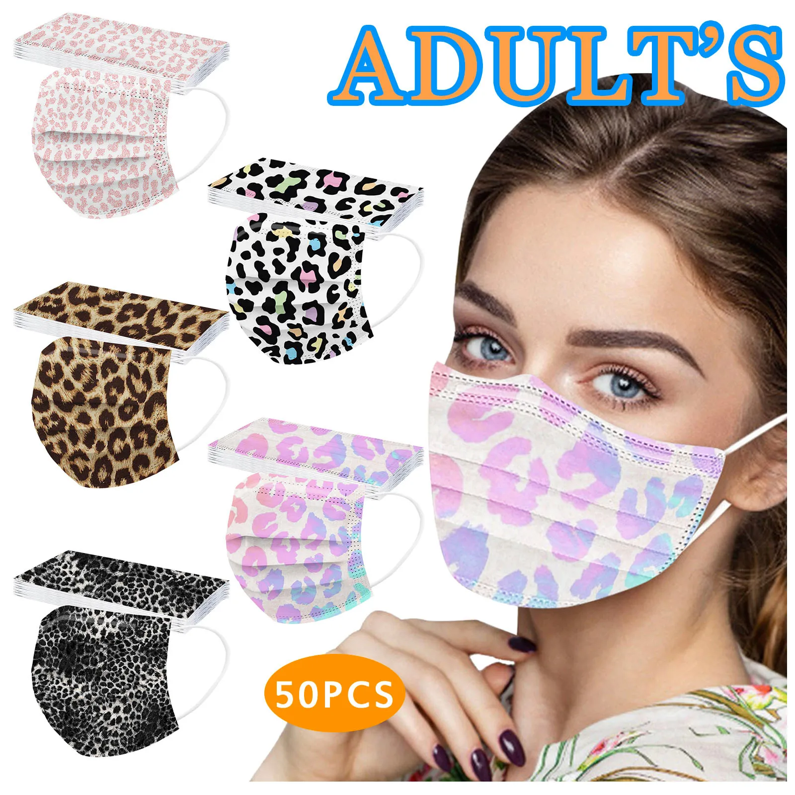 50 шт одноразовые дыхательные аппараты для взрослых с леопардовым принтом масок для лица Маска Тканевая 3 Слои пыле маски нетканый 3 Слои Ply Earloops маски Mondkapjes