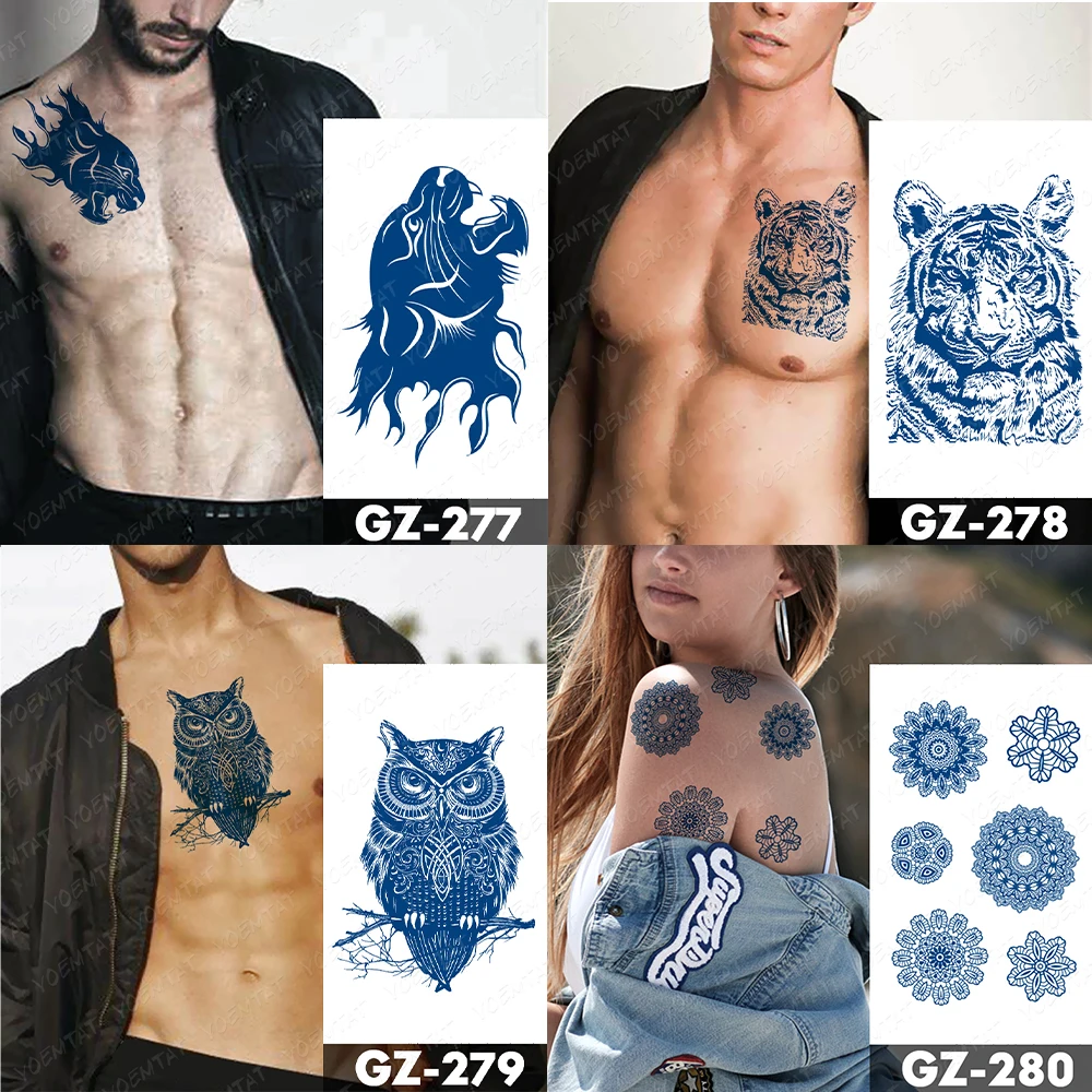 После контакта с кожей, окислительно активированный пигмент будет выглядеть синим и черным, что также является цветом настоящей татуировки. Не бойтесь потереть, это более Реалистичная татуировка на две недели Новые материалы, отличные цвета, более реальные