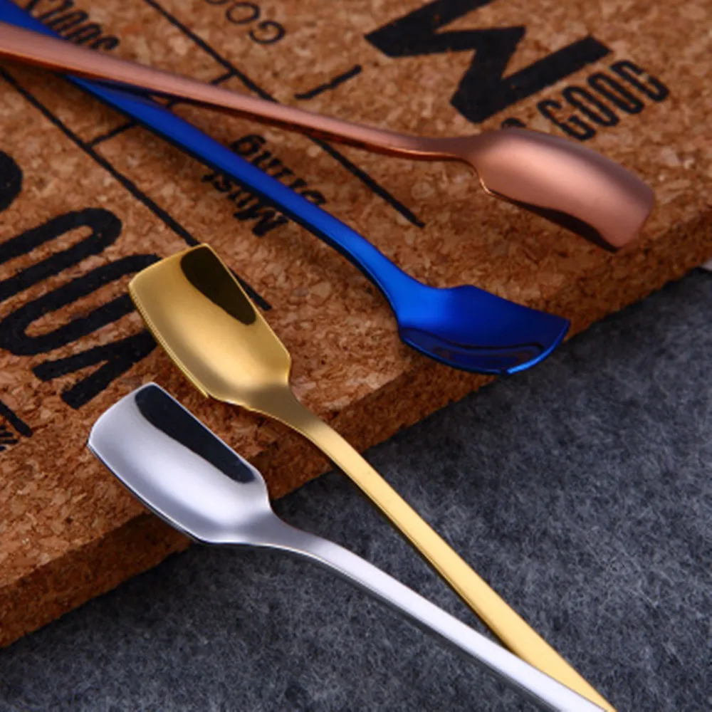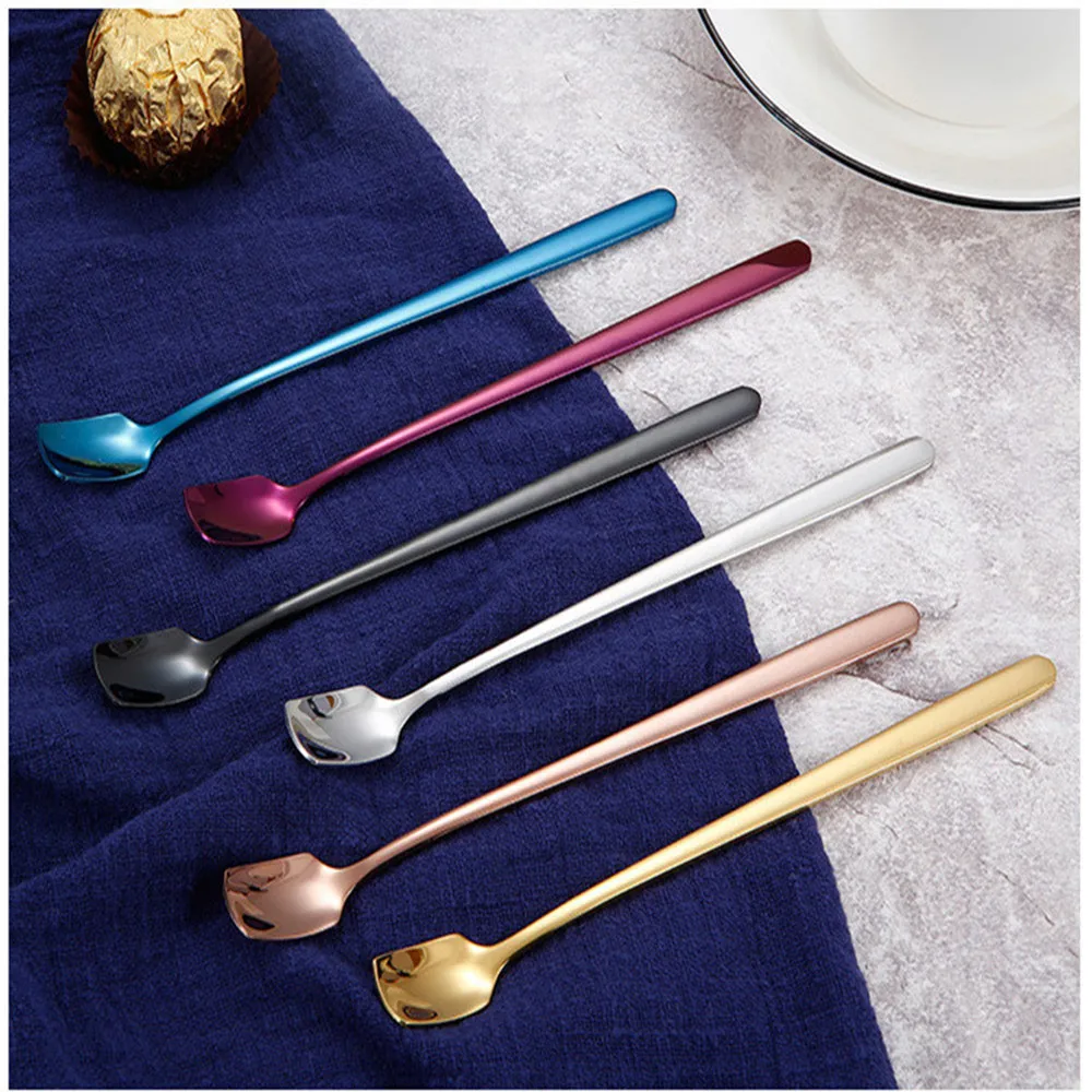 6 шт/комплект Нержавеющая сталь ложка Новый 6 цветов в Корейском стиле ложки с длинной ручкой, с золотым напылением ложки 15/17 см цвета: золотистый, Кухня аксессуары