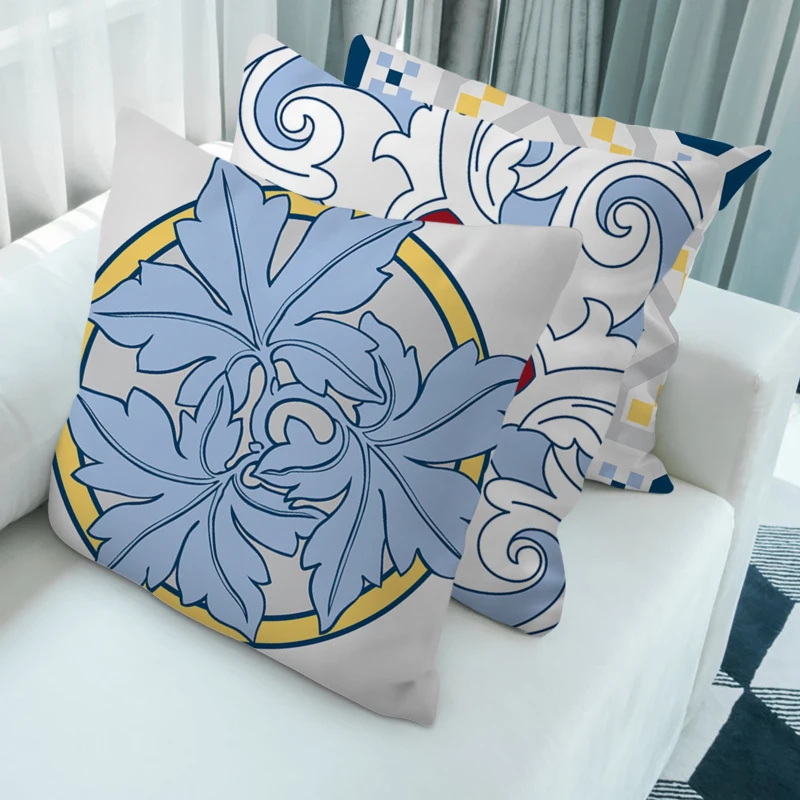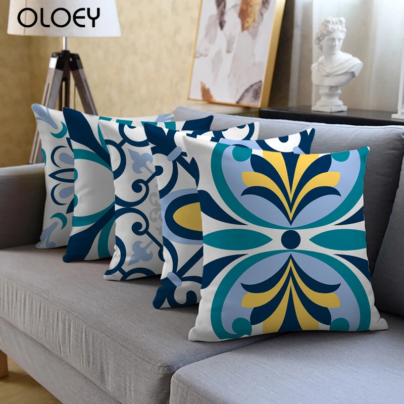 Геометрические декоративные наволочки, синие и желтые наволочки с цветочным принтом, наволочка для домашнего стула, дивана, декоративные подушки 45x45