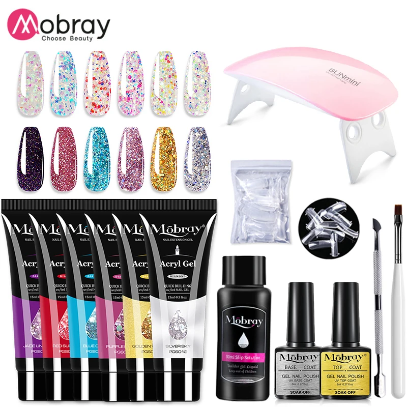 Набор гелей для наращивания ногтей Mobray PolyУФ-светодиод для ногтейГель для ногтей с блестками, Гель-лак для ногтей, набор инструментов для маникюра