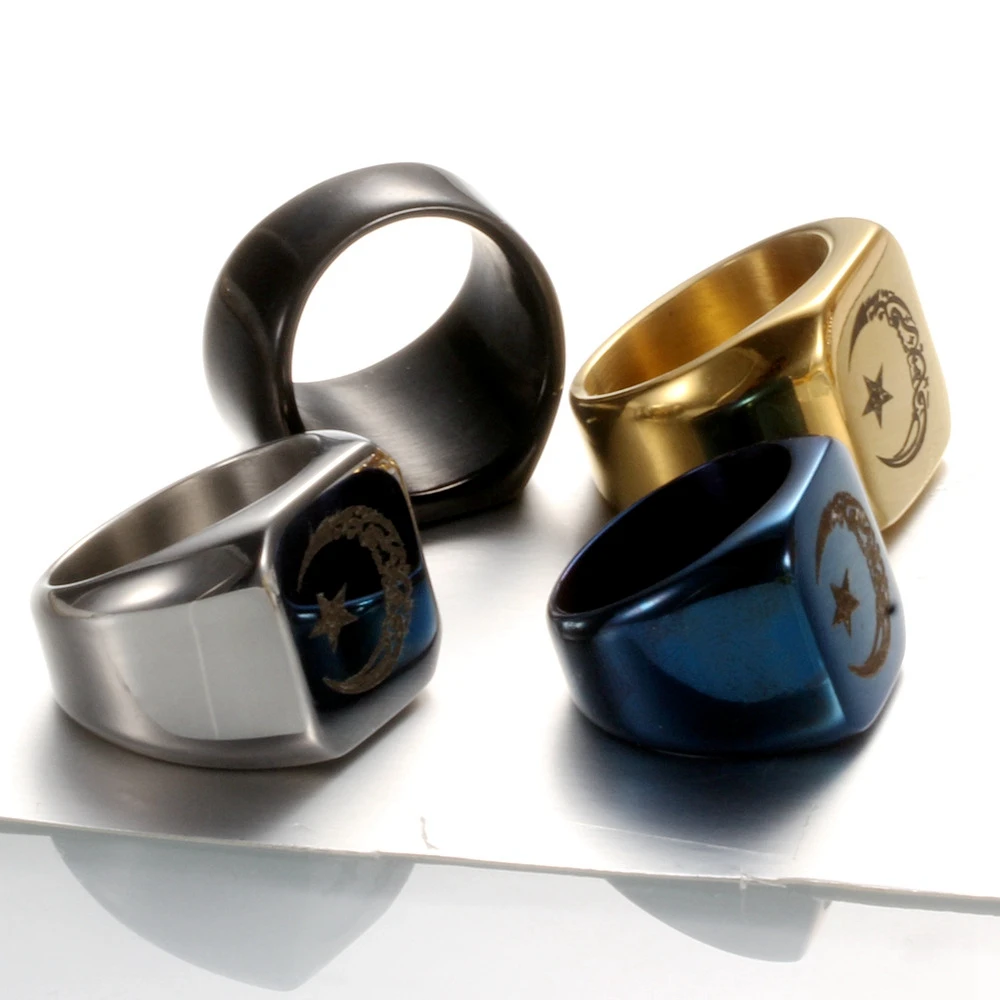 Новое модное ретро кольцо из титановой стали со звездой луной, кольца в арабском мусульманском стиле, унисекс