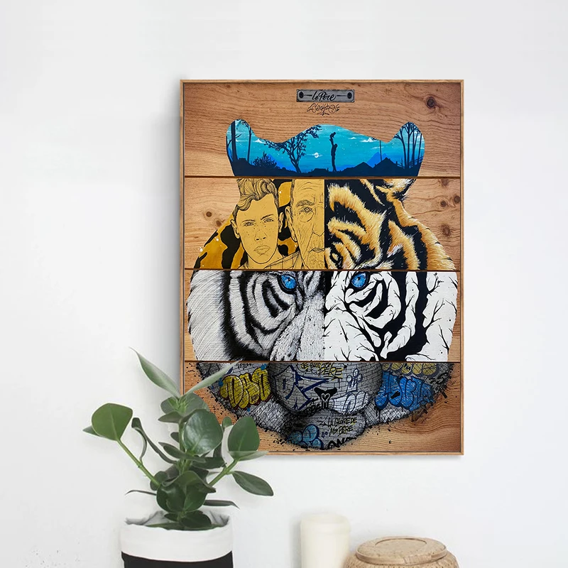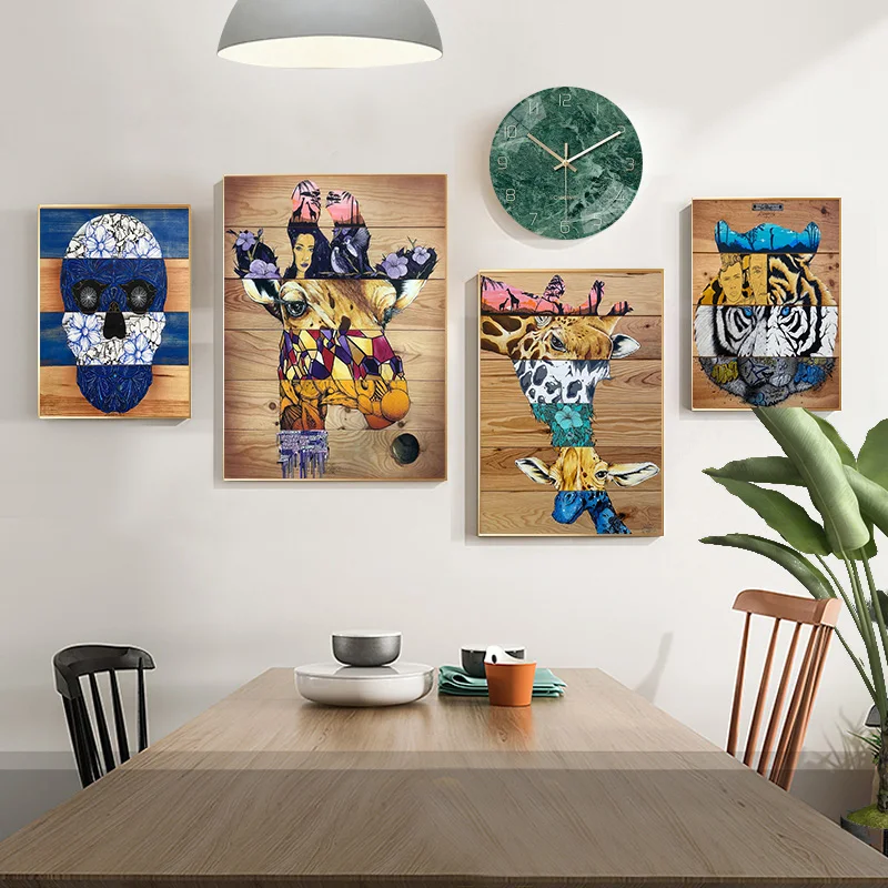 Деревянный коллаж, жираф, Череп, тигр, искусство, печать на холсте, картина для гостиной, абстрактная фотография, Декор для дома, плакат