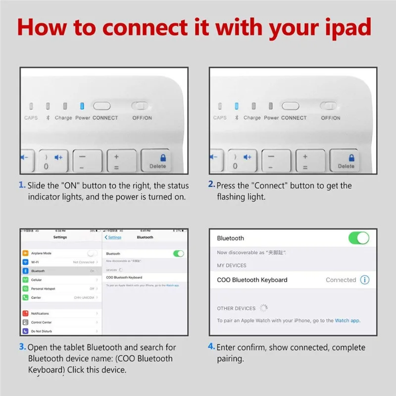 Особенности:* Стандарт 3,0, Broadcom Bluetooth решение* Эффективное расстояние 10 метров* Непрерывное рабочее время: 70 часов* Время зарядки: 4-5 часов* Емкость литиевой батареи: 250MHA* Срок службы литиевой батареи: 3 года* Срок службы кнопки: 500 миллионов раз* Легкий, тихий нажатие клавиш, водонепроницаемый и пыленепроницаемый* Энергосберегающий режим сна клавиатуры.* Тихие нажатия клавиш.* Легкий, компактный, легко носить с собой и обрабатывать.* Цвет на выбор: черный, золотой, темно-синий, розовое золото