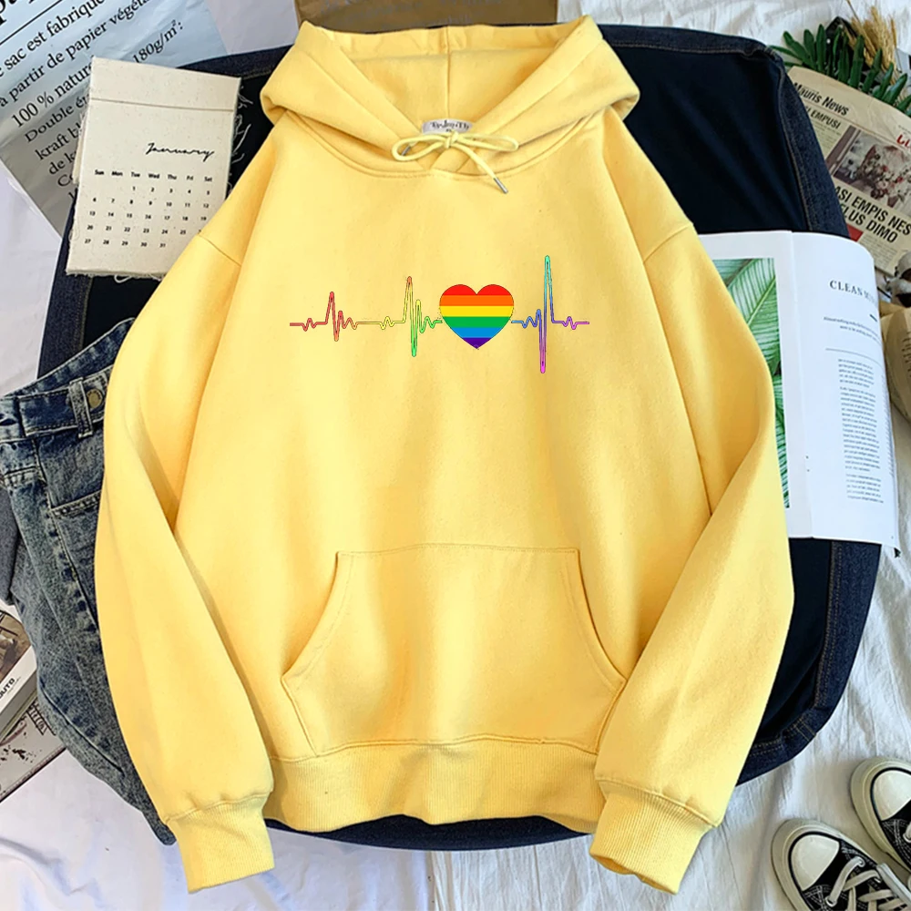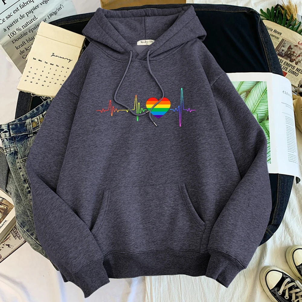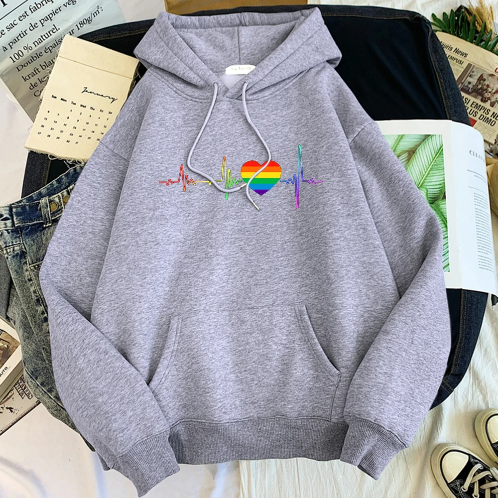 Толстовка с принтом сердца радуги Женская 2021 толстовка с капюшоном с длинным рукавом одежда в стиле хип-хоп корейские эстетические свитшоты для женщин