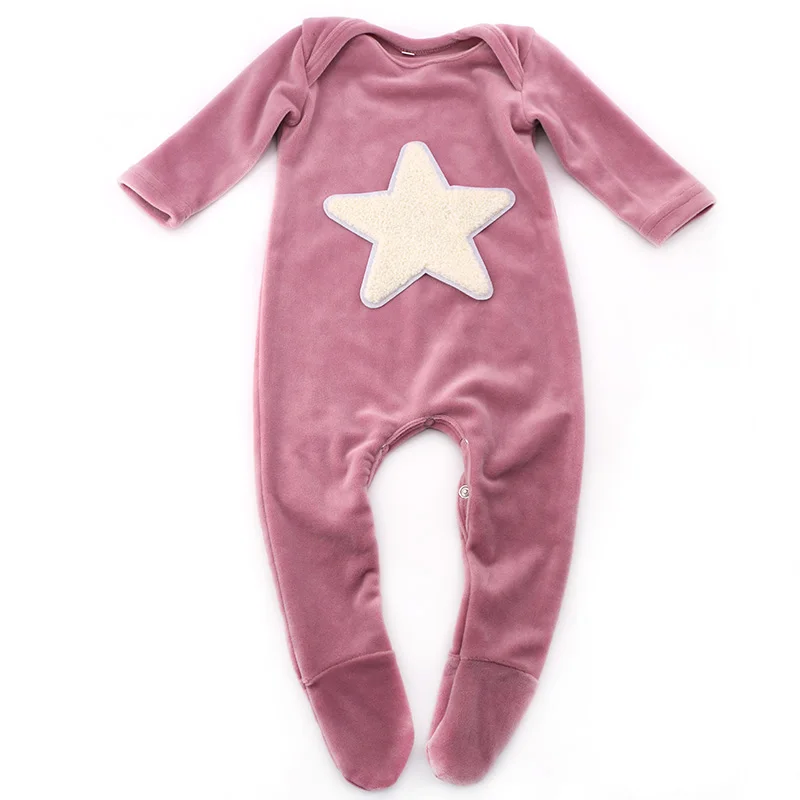 Мягкие велюровые комбинезоны для девочек и мальчиков 0-12 месяцев, детские пижамы со звездами, Повседневная зимняя одежда для девочек, комбинезоны с длинными рукавами, детские пижамы