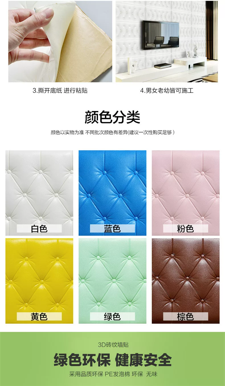 Толстая самоклеящаяся мягкая наклейка для изголовья кровати, настенная наклейка, татами, мягкая упаковка, имитация прикроватного бампера, пенная Наклейка на стену