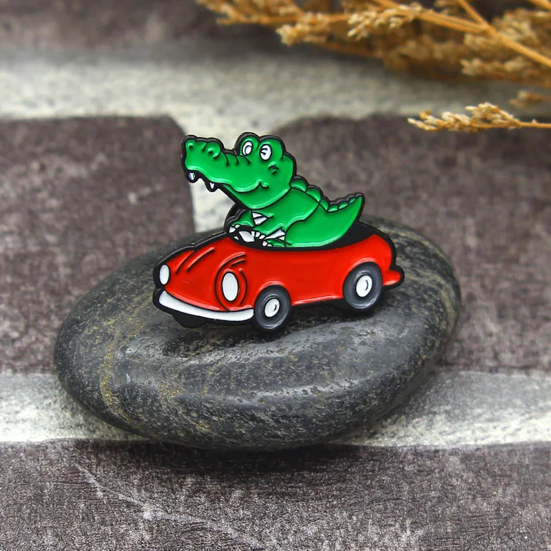 Эмалированная брошь в виде крокодила, лягушки, Красного автомобиля