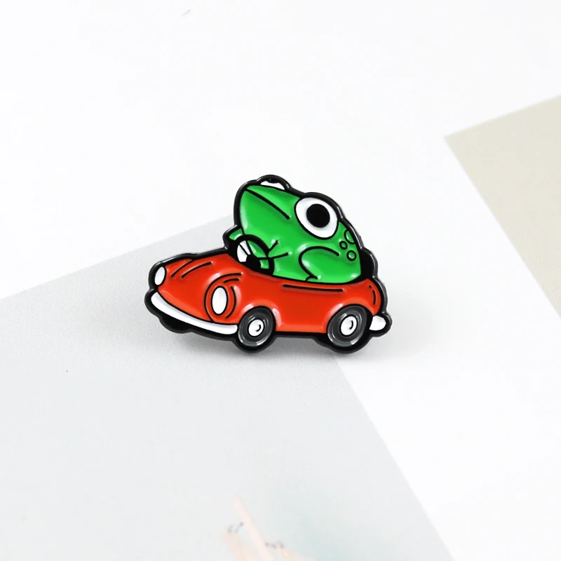 Модная эмалированная брошь в виде мультяшного автомобиля лягушки из...